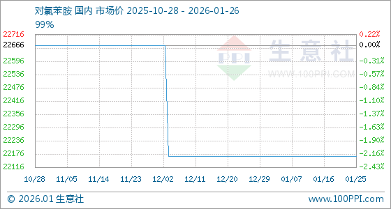 1月26日,生意社对氯苯胺基准价为22166.67元/吨,与本月初持平。
