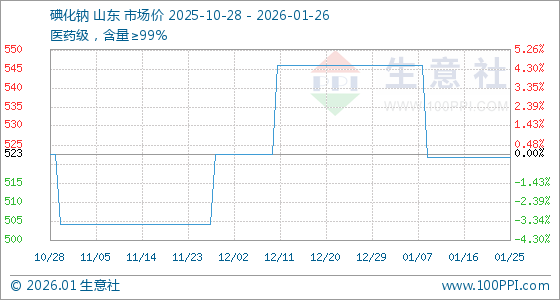 1月26日,生意社碘化钠基准价为522.50元/千克,与本月初(546.67元/千克)相比,下降了4.42%。