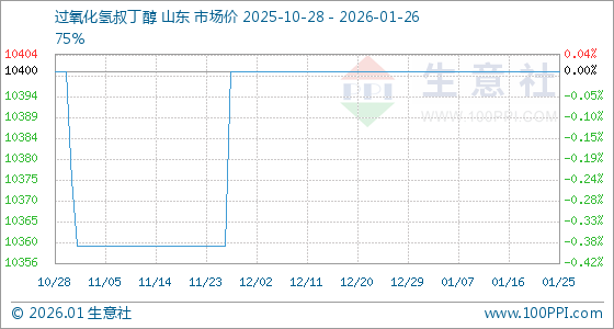 1月26日,生意社过氧化氢叔丁醇基准价为10400.00元/吨,与本月初持平。