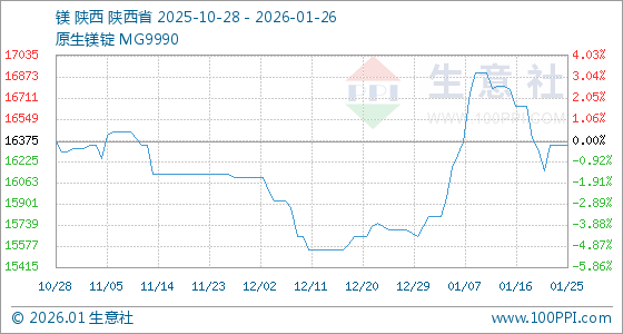 1月26日,生意社镁基准价为16350.00元/吨,与本月初(15725.00元/吨)相比,上涨了3.97%。