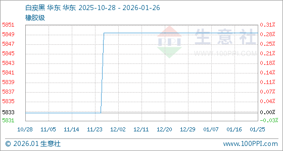 1月26日,生意社白炭黑基准价为5850.00元/吨,与本月初持平。
