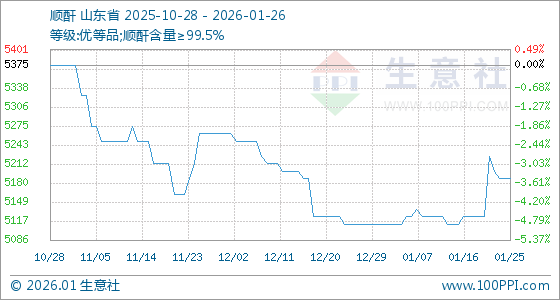 1月26日,生意社顺酐基准价为5187.50元/吨,与本月初(5112.50元/吨)相比,上涨了1.47%。
