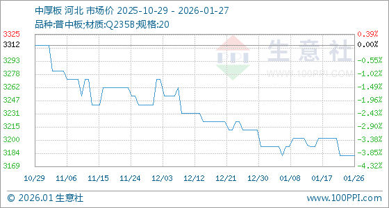 1月27日,生意社中厚板基准价为3182.00元/吨,与本月初(3192.00元/吨)相比,下降了0.31%。