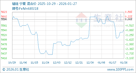 1月27日,生意社锰硅基准价为5546.00元/吨,与本月初(5602.00元/吨)相比,下降了1%。