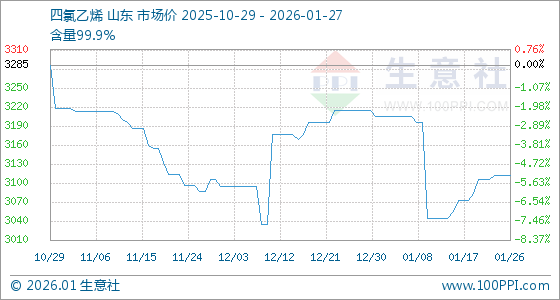 1月27日,生意社四氯乙烯基准价为3111.11元/吨,与本月初(3205.00元/吨)相比,下降了2.93%。