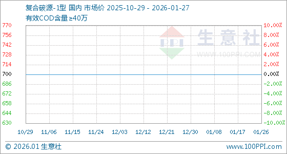 1月27日,生意社复合碳源-1型基准价为700.00元/吨,与本月初持平。