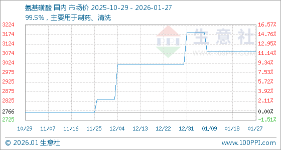 1月27日,生意社氨基磺酸基准价为3087.50元/吨,与本月初(3183.33元/吨)相比,下降了3.01%。