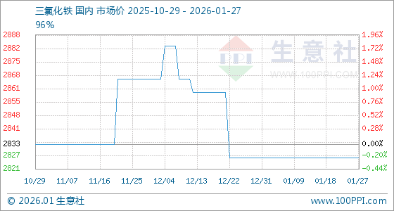 1月27日,生意社三氯化铁基准价为2826.67元/吨,与本月初持平。