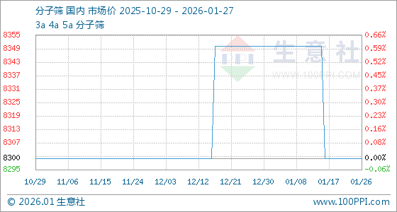 1月27日,生意社分子筛基准价为8300.00元/吨,与本月初(8350.00元/吨)相比,下降了0.6%。