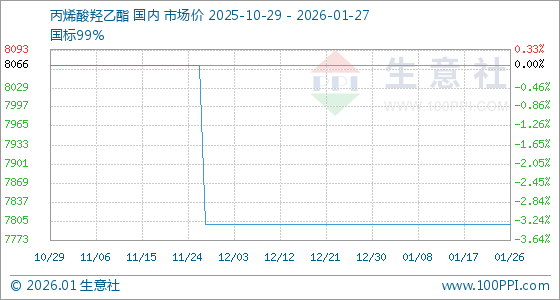 1月27日,生意社丙烯酸羟乙酯基准价为7800.00元/吨,与本月初持平。