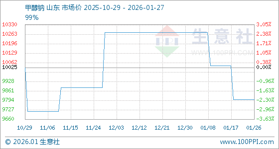 1月27日,生意社甲醇钠基准价为9800.00元/吨,与本月初(10275.00元/吨)相比,下降了4.62%。