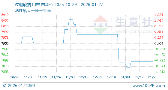 1月27日,生意社过硼酸钠基准价为7890.00元/吨,与本月初(7983.33元/吨)相比,下降了1.17%。