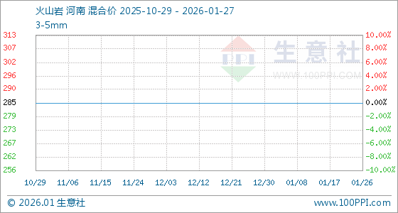 1月27日,生意社火山岩基准价为285.00元/吨,与本月初持平。