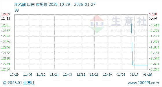 1月27日,生意社苯乙酮基准价为12066.67元/吨,与本月初(12433.33元/吨)相比,下降了2.95%。