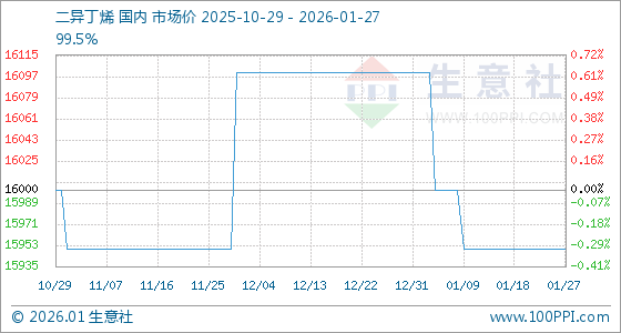 1月27日,生意社二异丁烯基准价为15950.00元/吨,与本月初(16100.00元/吨)相比,下降了0.93%。