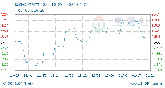 1月27日,生意社螺纹钢基准价为3214.66元/吨,与本月初(3232.00元/吨)相比,下降了0.54%。