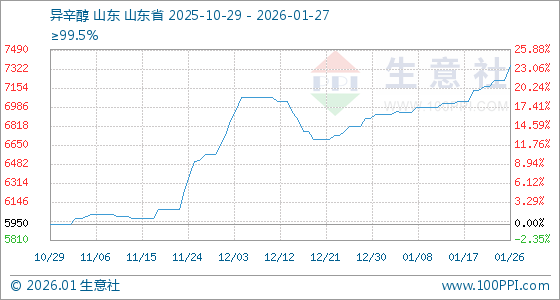 1月27日,生意社异辛醇基准价为7350.00元/吨,与本月初(6916.67元/吨)相比,上涨了6.27%。