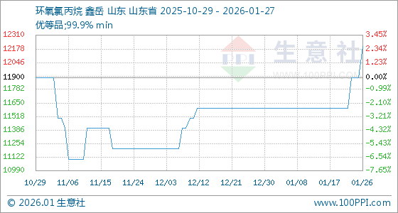 1月27日,生意社环氧氯丙烷基准价为12200.00元/吨,与本月初(11600.00元/吨)相比,上涨了5.17%。