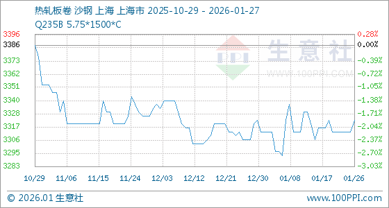 1月27日,生意社热轧板卷基准价为3323.33元/吨,与本月初(3313.33元/吨)相比,上涨了0.30%。