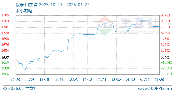 1月27日,生意社尿素基准价为1745.00元/吨,与本月初(1725.00元/吨)相比,上涨了1.16%。