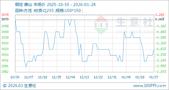 1月28日,生意社钢坯基准价为3020.00元/吨,与本月初(3010.00元/吨)相比,上涨了0.33%。