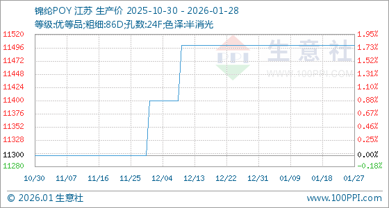 1月28日,生意社锦纶POY基准价为11500.00元/吨,与本月初持平。