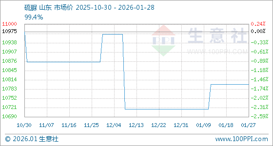 1月28日,生意社硫脲基准价为10800.00元/吨,与本月初(10716.67元/吨)相比,上涨了0.78%。
