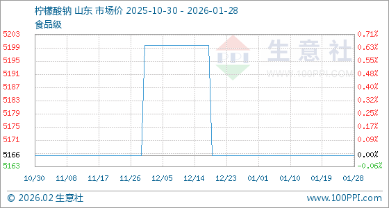 1月28日,生意社柠檬酸钠基准价为5166.67元/吨,与本月初持平。