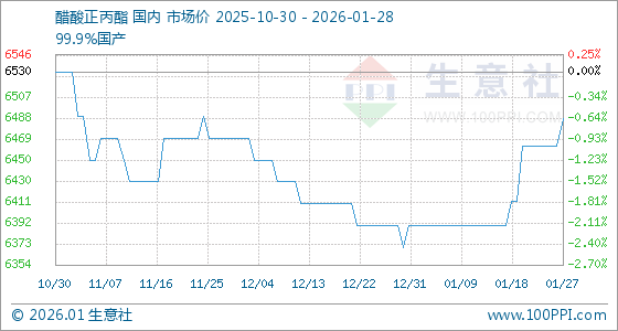 1月28日,生意社醋酸正丙酯基准价为6487.50元/吨,与本月初(6390.00元/吨)相比,上涨了1.53%。