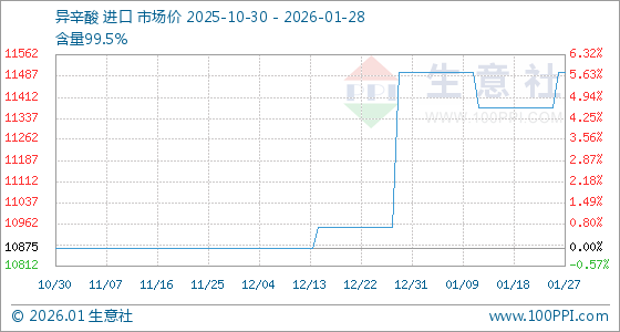 1月28日,生意社异辛酸基准价为11500.00元/吨,与本月初持平。