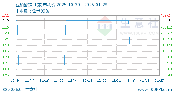 1月28日,生意社亚硝酸钠基准价为2083.33元/吨,与本月初(2125.00元/吨)相比,下降了1.96%。