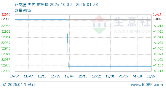 1月28日,生意社正戊腈基准价为32933.33元/吨,与本月初持平。