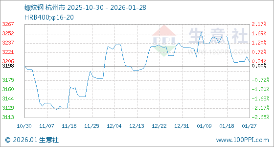 1月28日,生意社螺纹钢基准价为3204.00元/吨,与本月初(3232.00元/吨)相比,下降了0.87%。