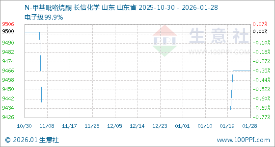 1月28日,生意社N-甲基吡咯烷酮基准价为9466.67元/吨,与本月初(9433.33元/吨)相比,上涨了0.35%。