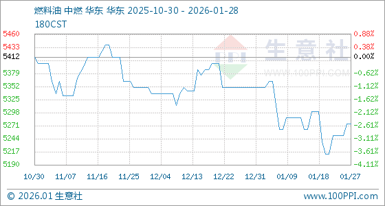 1月28日,生意社燃料油基准价为5275.00元/吨,与本月初(5350.00元/吨)相比,下降了1.4%。