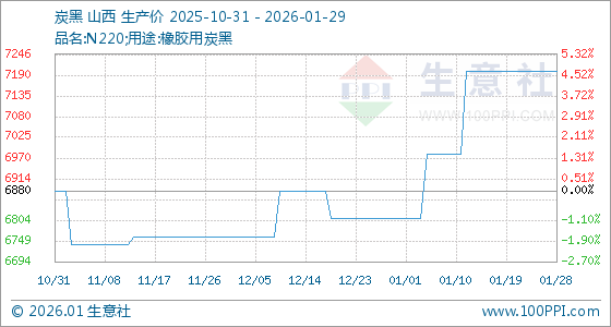 1月29日,生意社炭黑基准价为7200.00元/吨,与本月初(6810.00元/吨)相比,上涨了5.73%。