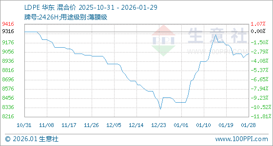 1月29日,生意社LDPE基准价为9033.33元/吨,与本月初(8400.00元/吨)相比,上涨了7.54%。