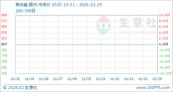1月29日,生意社复合碱基准价为807.50元/吨,与本月初持平。