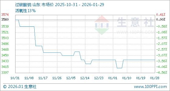 1月29日,生意社过碳酸钠基准价为3437.50元/吨,与本月初持平。