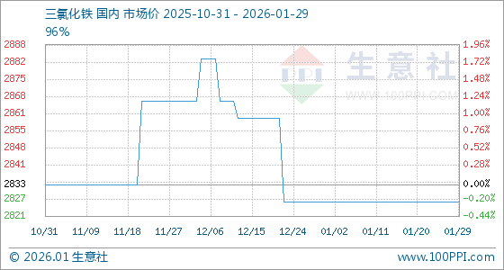 1月29日,生意社三氯化铁基准价为2826.67元/吨,与本月初持平。