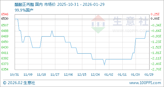 1月29日,生意社醋酸正丙酯基准价为6487.50元/吨,与本月初(6390.00元/吨)相比,上涨了1.53%。
