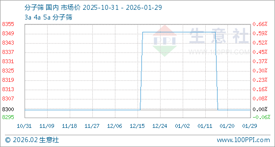 1月29日,生意社分子筛基准价为8300.00元/吨,与本月初(8350.00元/吨)相比,下降了0.6%。