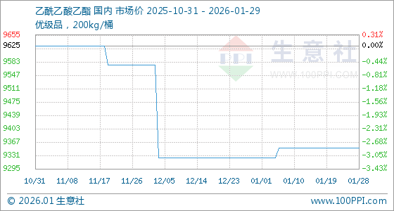 1月29日,生意社乙酰乙酸乙酯基准价为9350.00元/吨,与本月初(9325.00元/吨)相比,上涨了0.27%。