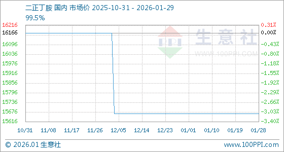 1月29日,生意社二正丁胺基准价为15666.67元/吨,与本月初持平。