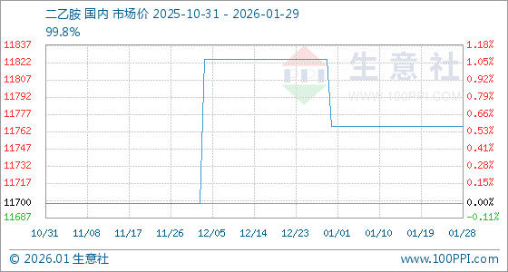 1月29日,生意社二乙胺基准价为11766.67元/吨,与本月初持平。