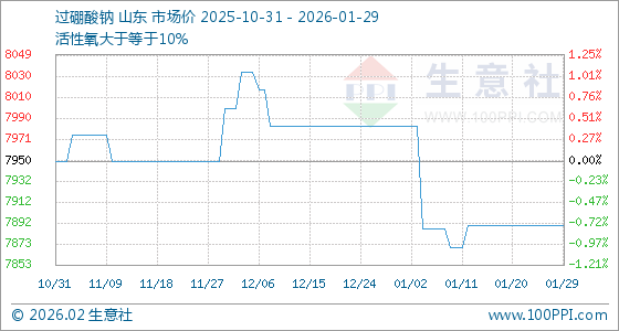 1月29日,生意社过硼酸钠基准价为7890.00元/吨,与本月初(7983.33元/吨)相比,下降了1.17%。