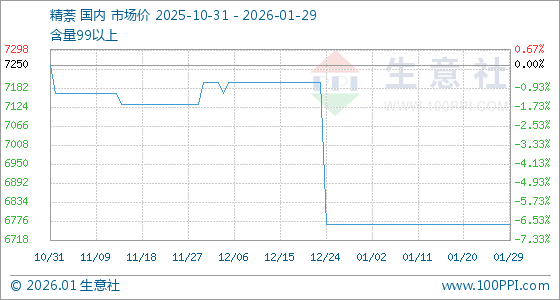 1月29日,生意社精萘基准价为6766.67元/吨,与本月初持平。