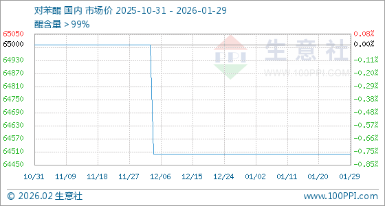 1月29日,生意社对苯醌基准价为64500.00元/吨,与本月初持平。