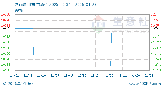 1月29日,生意社酒石酸基准价为10250.00元/吨,与本月初(10166.67元/吨)相比,上涨了0.82%。