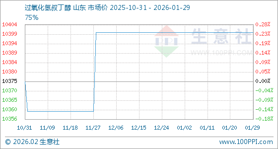 1月29日,生意社过氧化氢叔丁醇基准价为10400.00元/吨,与本月初持平。